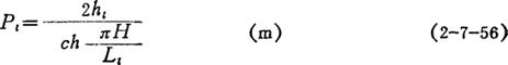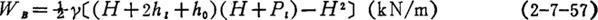 式中 2hl——波浪高度(m) 2Ll——波浪长度(m) ch——双曲线余弦函数 作用于1m宽的水闸上的波浪压力WB为: