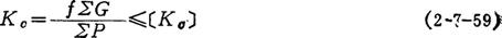 式中 ΣG——所有垂直力之和(kN) ΣP——所有水平力之和(kN) 〔KC〕——容许的抗滑稳定系数,可按表2-7-25采用 表2-7-25 非岩基土的〔KC〕