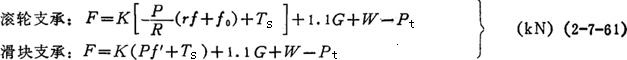 式中 R——支承轮半径(m) r——支承轮轮轴半径(m) f——轴承滑动摩擦系数,见表2-7-27 表2-7-27 摩擦系数
