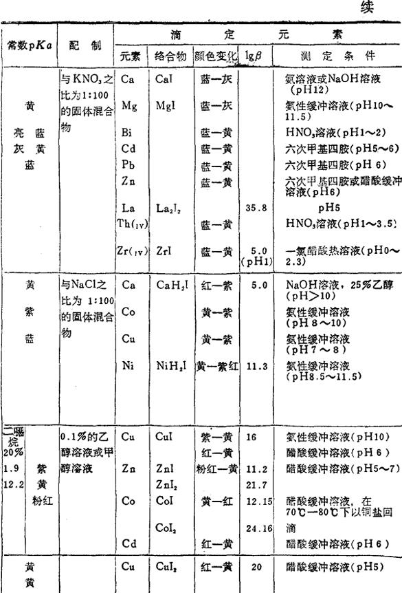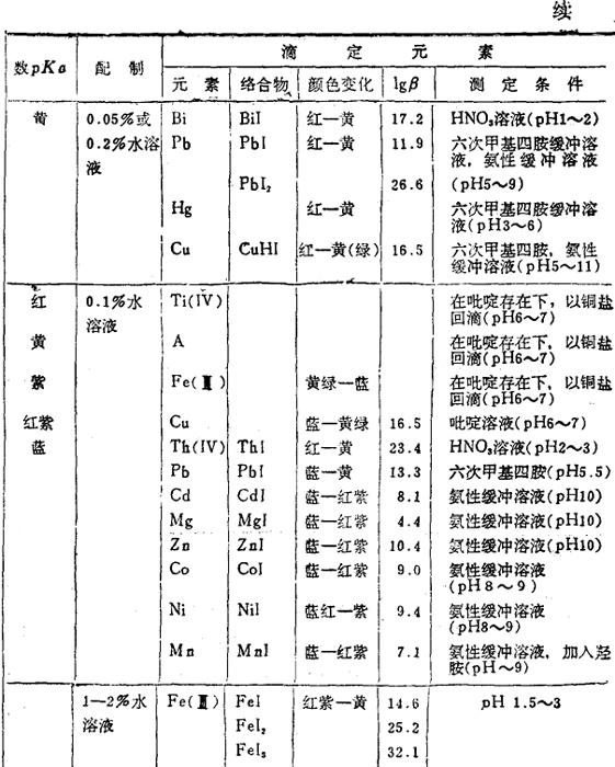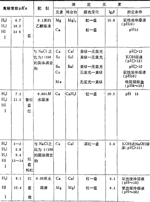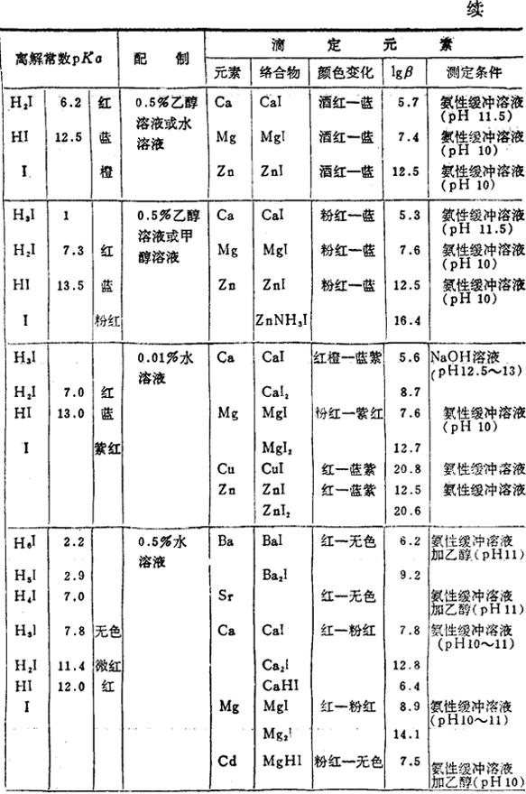 1.Anders Ringbom:《Complexation in Analytical Chemistry》298-371页(1963). 2.Edmund Bishop:《Indicators》209-429页(1972). 3.J.Inczedy:《Analytical Applications Complex Equilibria》317-368页(1976).