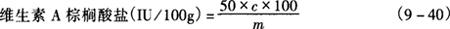式中 c——样液中维生素A棕榈酸盐浓度,IU/mL m——取样量,g
