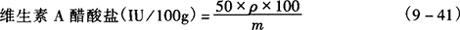 式中 ρ——样液中维生素A醋酸盐浓度,IU/mL m——取样量,g 样品中维生素A的含量是维生素A棕榈酸盐和维生素A醋酸盐含量之和。 |