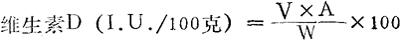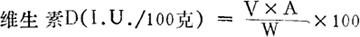 式中:V:样品提取液总体积(毫升); A:从标准曲线查得的测定样液维生素D含量(1.U./毫升); W:样品称重(克)。 |