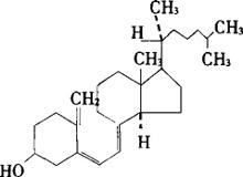 分子式:C28H44O 相对分子质量:396.66 (一)维生素D2的鉴别 1.试剂和溶液 1.1 三氯甲烷。 1.2 乙酸酐。 1.3 硫酸。 2.鉴别方法 取本品约0.5mg,加三氯甲烷5mL溶解后,加乙酸酐0.3mL与硫酸0.tmL振摇,初显黄色,后渐变红色迅速变为紫色,最后成绿色。 (二)维生素D2含量测定 1.试剂和溶液 1.1 色谱纯试剂 正戊醇、正己烷、异辛烷。 1.2 2,6-二叔丁基对甲酚。 1.3 内标试剂 邻苯二甲酸二甲酯。 1.4 标准品 维生素D标准品,由卫生部颁发。 2.仪器 高压液相色谱仪。 3.测定方法 3.1 对照品贮备液的制备 称取维生素D2对照品25mg(准确至0.0002mg),置于100mL棕色量瓶中,加异辛烷80mL,避免加热,用超声处理助溶1min使完全溶解,加异辛烷至刻度,摇匀,充氮密塞,避光,0℃以下保存。 3.2 内标溶液的制备 精密取邻苯二甲酸二甲酯25mg,置25mL棕色量瓶中,加正己烷至刻度,摇匀。 3.3 样品溶液的制备 精密取供试品25mg,置100mL棕色量瓶中,加异辛烷80mL,避免加热,超声处理助溶1min使完全溶解,加异辛烷至刻度,摇匀。精密量取上述溶液与内标液各5mL,置50mL棕色量瓶中,加正己烷至刻度,摇匀,作为供试品溶液。 3.4 系统适用性试验 用硅胶为填充剂,正己烷-正戊醇(994∶6)为流动相,检测波长为254nm,量取维生素D2对照品贮备液5mL,置具塞玻璃容器中,通氮后密塞,置90℃水浴中加热1h,取出迅速冷却后,加正己烷5mL,摇匀,置1cm具塞石英吸收池中,将石英吸收池斜放成45°,在主波长为254nm和365nm的紫外线照射5min,使溶液中含有前维生素D2、反式维生素D2。维生素D2和速甾醇D2。取此溶液注入液相色谱仪中,测定维生素D2峰值,先后进样5次,相对标准偏差应不大于2.0%,前维生素D2(与维生素D2的比保留时间约0.5)与反式维生素D2(与维生素D2的比保留时间约为0.6)以及维生素D2与速甾醇D2(与维生素D2的比保留时间约为1.1)的峰分离度均大于1.0。 3.5 校正因子的测定 精密取对照品贮备溶液和内标溶液各5mL,置50mL棕色量瓶中,加正己烷至刻度,摇匀;取一定量注入液相色谱仪,计算维生素D校正因子f1。精密取对照品贮备液5mL,置50mL棕色量瓶中,加入2,6-二叔丁基对甲酚结晶1粒,通氮排气后,密塞,置90℃水浴中加热1.5h,取出迅速冷却至室温,精密加内标溶液5mL,加正己烷至刻度,摇匀,取一定量注入色谱仪,计算校正因子。 f2=(4s×mr-f1×ms×Ar1)/(Ar2×ms) (9-42) 式中 f2——前维生素D2折算成维生素D2的校正因子 As——内标的峰面积 mr——加入对照品的量,g f1——维生素D2的校正因子 ms——加入内标物质的量,g Ar2——维生素D2的峰面积 Ar2——前维生素D2的峰面积 3.6 含量测定 按高效液相色谱法中的内标加校正因子测定法(《中华人民共和国药典》1990年版二部附录68页)测定,取样品溶液,注入液相色谱仪中,记录色谱图,测量峰面积。 4.分析结果的表述 x=(f1·Ai1+f2·Ai2)ms×100/(As·m) (9-43) 式中 x——维生素D2及前维生素D2折算成维生素D2的总含量,% Ai1——维生素D2的峰面积 Ai1——前维生素D2的峰面积 m,——加入内标物质的量,g As——内标的峰面积 m——样品质量,g f1——维生素D2的校正因子 f2——前维生素D2折算成维生素D2的校正因子 5.允许差 本方法平行测定的允许绝对差在1.5%之内。 二、维生素D3 化学名:9,10-开环胆甾-5,7,10(19)-三烯-3β-醇。又名维生素D3,胆钙化醇结构式: