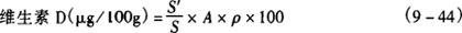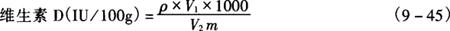 式中 ρ——从标准曲线上查得维生素D浓度,IU/mL V1——定容体积,mL V2——测定时取样液的量,mL m——样品质量 |