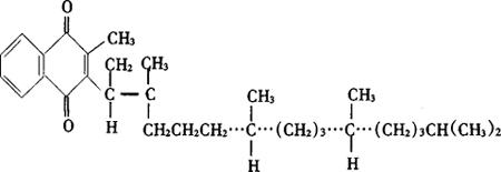 | 释义 | 维生素K的测定方法 化学名:2-甲基-3-(3,7,11,15-四甲基-2-十六碳烯基)-1,4-萘二酮的反式和顺式异构体的混合物。维生素K1,植物甲萘醌 结构式:VitK1