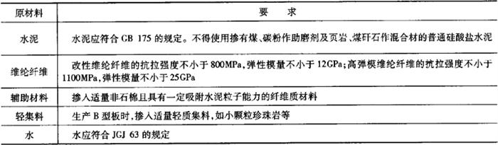 表3-104 维纶纤维增强水泥平板的原材料要求