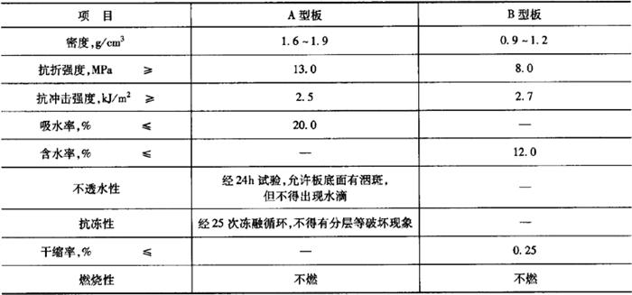 表3-105 维纶纤维增强水泥平板的物理力学性能