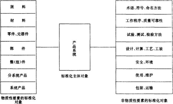 图9.3-1× × ×综合标准化对象 我国国家标准GB/T12366.1,把综合标准化定义为“综合标准化是为了达到确定的目标,运用系统分析方法,建立标准综合体,并贯彻实施的标准化活动”。该定义进一步强调了综合标准化要应用系统工程方法。综合标准化不仅包括标准、标准化措施,还要包括时间、人、财、物等要素。 该定义中所说的标准综合体是指综合标准化对象及其相关要素按其内在联系或功能要求形成的、相关指标协调优化、相互配合的成套标准。 从以上定义也可看出,开展综合标准化的目的和意义,一方面是保证标准化对象——最终产品达到最佳技术水平和质量水平,提高标准化对象系统整体的技术经济效益,同时促进标准化自身体系的形成和完善,促进企业管理水平的提高。它的任务,既包括标准制定,也包括标准的贯彻实施。 |