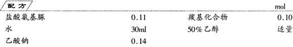 将0.11mol盐酸氨基脲溶于30ml水,加入0.14mol乙酸钠作为缓冲剂,然后再加入0.10mol羰基化合物,将混合物置于水浴上加热搅拌15~20min,然后静置1h,将析出的结晶抽滤,洗涤,干燥,用50%乙醇溶液重结晶,得到缩氨脲化合物。测其熔点及其IR光谱。