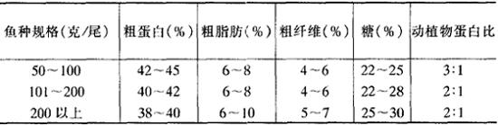 (1)网箱应当在鱼种放养前7~10天就下水上架,让网衣上附一些藻类,这样可减轻网衣对鱼体的擦伤。 (2)鱼种应在头年的10~11月至翌年3月下旬之前进入成鱼箱,进箱前用15~30毫克/升的呋喃唑酮或较浓的呋喃西林药液浸浴消毒。 (3)同箱鱼种的规格尽可能整齐一致,切忌不论大小凑数了事。 5.饲料及其投喂 网箱用成鱼饲料的主要营养指标见表2-18。 表2-18 网箱养长吻鮠成鱼的配合饲料的主要营养指标