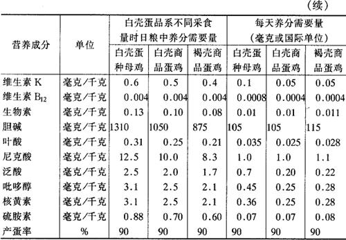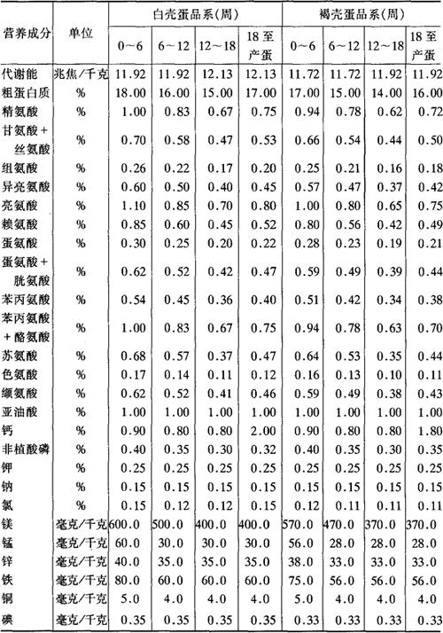 美国蛋鸡饲养标准(国家标准,1994)