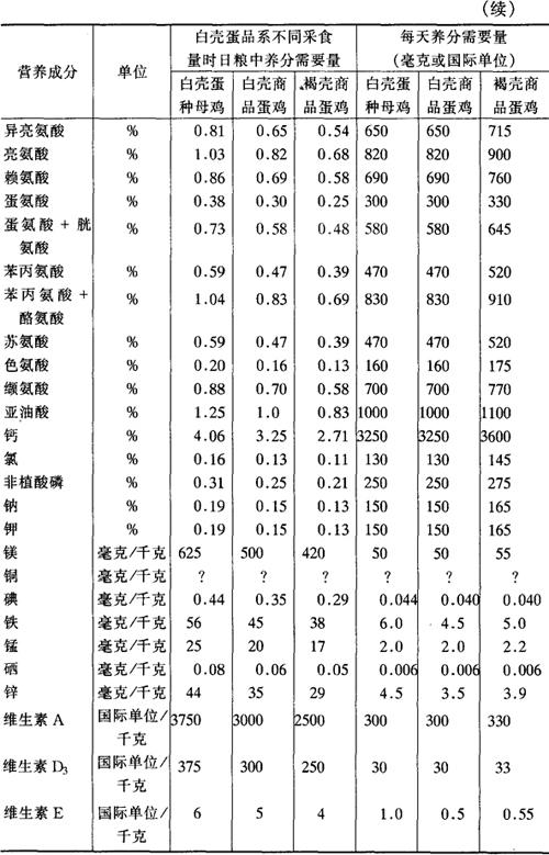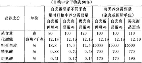表5-15 美国(NRC)产蛋鸡营养成分需要量
