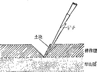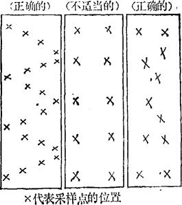 | 释义 | 耕作土壤混合样品的采集 为了研究植物生长期内耕作层中养分供求情况,采样一般不需要挖土坑,只需取耕层20cm左右的土壤即可,对作物根系较深的如小麦地土壤等,可适当增加采样深度。采样点的多少可根据试验区的面积大小而定,通常地块面积小要采5个以上点,地块面积大的可采20个以上的点,取样点的分布采用蛇形或对角线等(图3-1)。避免在粪堆底上和同一垄上以及田边路边沟边和特殊地形部位采样。采样时在确定的采样点上,用小土铲斜向下切取一片片的土壤样品,每个样点采取的土壤厚、薄、深、浅、宽、狭应大体一致(图3-2)。集中起来混合均匀。