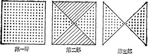 图3-2 土壤采样图 采来的土壤样品如果数量太多,可用四分法弃去一部分土壤,一般有1kg左右的土壤样品就够测定化学、物理性质项目分析之用。所谓的四分法分样就是:将采来的土壤样品弄碎混合,平铺成圆锥形或四方形,以对角线划分成四份保留对角的二分,弃去另外对角的二分。如果保留的样品仍然很多,可再用四分法处理,直到所需数量为止(图3-3)。
