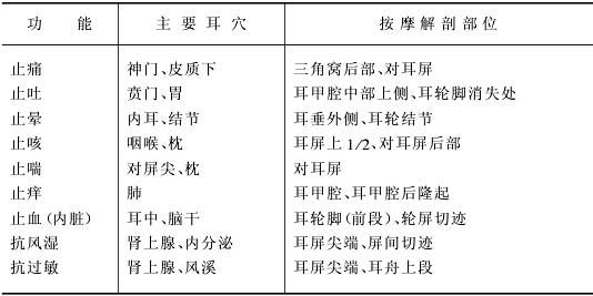 | 释义 | 耳穴按摩与养生保健 耳穴按摩法,不仅是一种自我养生保健的方法,亦是一种治疗疾病的方法,它具有操作方便、实用有效、易于推广的特点。 一、耳穴按摩的特点 (一)根据疾病部位进行按摩 鼻咽部疾病——按摩耳屏; 头部疾病——按摩对耳屏; 面部疾病——按摩耳垂; 躯体疾病——按摩对耳轮; 下肢疾病——按摩对耳轮上脚; 臀部疾病——按摩对耳轮下脚; 上肢疾病——按摩耳舟; 胸腔疾病——按摩耳甲腔; 腹腔疾病——按摩耳甲艇; 盆腔疾病——按摩三角窝; 膈肌疾病——按摩耳轮脚。 (二)根据部分耳穴功能进行按摩