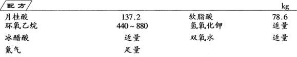 制法 按聚合度的要求和原料酸的成分,将月桂酸、软脂酸和KOH加入反应釜内,用抽真空和氮气置换法赶去反应釜内的水汽和氧气。升温到170~190℃时开动搅拌,用氮气将定量的环氧乙烷压入反应釜内,使反应压力控制在294~392kPa。待环氧乙烷加完后,用冰醋酸中和,最后用双氧水漂白,得棕色产品。 本法可利用混合酸直接氧乙烯化来合成非离子型表面活性剂。 |