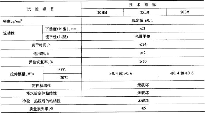 表8-37 聚硫建筑密封胶的物理力学性能