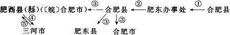 ①1912年称合肥县;1938年日军侵占县城,县政府迁至肥西官亭,在梁园镇设肥东办事处。②1945年抗战胜利,肥东办事处撤销,辖地并入合肥县。③1949年1月21日析城区置合肥市(地级市),皖北行署驻地,1952年后是安徽省的省会;同时成立肥东县、肥西县。④1949年析肥西县三河镇置三河市(县级)。⑤1951年撤销三河市,辖地并入肥西县,今为三河镇。