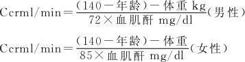 即可求出Cin数值,即患者的GFR。Cin虽然精确,但测定时程序繁杂,不适于临床应用,多用于临床实验研究工作。 3.临床意义 急性肾小球肾炎、慢性肾衰竭、心力衰竭时其Cin显着降低;慢性肾炎、肾动脉硬化、高血压晚期等可有不同程度的降低。 (三)内生肌酐清除率(Ccr) 1.定义 肌酐是肌酸的代谢产物,在人体内含肌酐约100g,其中98%存在于肌内,每日约更新2%,肌酸在磷酸肌酸激酶作用下,形成带有高能键的磷酸肌酸,为肌肉收缩时的能量来源和储备形式,磷酸肌酸放出能量再经脱水而变为肌酐,由肾排出。人体血液中肌酐的生成可有内、外源性两种,如在严格控制饮食条件和肌肉活动相对稳定的情况,血浆肌酐的生成量和尿的排出量较恒定,其含量的变化主要受内源性肌酐的影响,而且肌酐大部分是从肾小球滤过,不被肾小管重吸收,排泌量很少,故单位时间内,把若干毫升血浆中的内生肌酐全部清除出去,称为内生肌酐清除率(Ccr)。 2.方法 患者连续进食无肌酐饮食3日(禁肉类,每日蛋白质摄入量<40g),避免剧烈运动;第4日晨8时,将尿排尽弃去,然后准确留取24小时尿液,并加入甲苯4~5ml以防腐。在第5日采取抗凝血2~3ml与尿标本一起送检;测定血肌酐及尿肌酐浓度,并测定24小时总尿量。然后按下列公式计算: