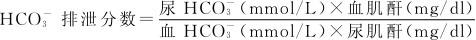 渗透分子浓度常以渗透压测定表示。 (3)临床意义:正常人禁水8小时后晨尿CH2O为—25~—120ml/h。CH2O可用于了解远端肾小管浓缩功能状态。急性肾小管坏死患者,CH2O常为正值。在其恢复过程中,可作为追踪观察肾小管恢复情况的指标,亦可用于发现移植肾早期排异等。 (三)肾小管酸化功能测定 1.氯化铵负荷(酸负荷)试验 服用一定量的酸性药物氯化铵,通过肝代谢,2NH4CL+H2CO3→(NH2)CO3+2HCL+2H2O,使机体产生急性代谢性酸中毒,增加肾小管排泌氢离子的负担。当肾小管受损时,其排H+、NH+4及重吸收HCO-3的功能发生障碍,酸性物质不能排出,尿液得不到酸化。通过观察尿pH值的变化,即可判断有无远端肾小管酸化功能障碍。 (1)3日氯化铵负荷法:口服氯化铵每日0.1g/kg,分3次服,连服3日。第3日收集尿液,每小时1次,共5次,测定每次尿的pH值。 (2)氯化铵单剂量法:一次性服用0.1g/kg,服药后2~8小时收集尿液,每小时1次,测定每次尿的pH值。 2.碳酸氢盐重吸收排泌(碱负荷)试验 用一定量的碱性药物碳酸氢盐,使机体体液碱化,以增加肾小管重吸收碳酸氢离子的负担。当近端肾小管受损时,其重吸收碳酸氢离子功能减退。通过观察尿液碳酸氢离子的排泌分数,有助于近端肾小管酸中毒的诊断,并可鉴别远端肾小管酸中毒。本试验是一治疗性诊断试验,安全性大。 (1)口服法:每日口服碳酸氢钠1~10mmol/kg,每3日逐渐加量一次,直至酸中毒被纠正,然后测定血浆和尿液中的HCO—3和肌酐含量,按下列公式计算出尿HCO—3排量占其滤过总量的比率,即HCO—3排泄分数: