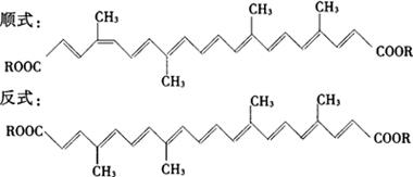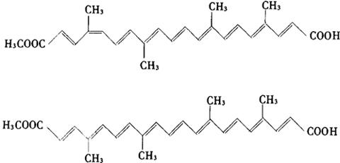 式中R=H、Na或K 油溶性:红木素(Bixin) 分子式:C25H30O4 相对分子质量:394.5 结构式