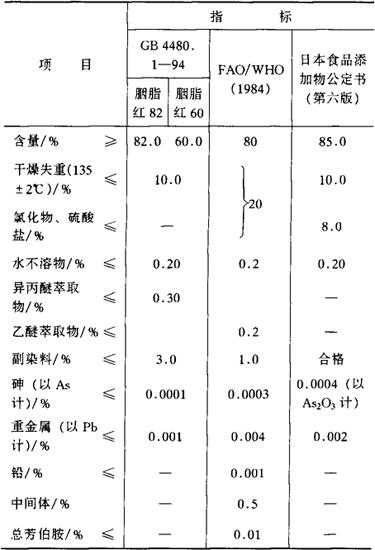 鉴别方法 (1)取本品0.1g溶于100mL水中,呈红色澄清溶液。 (2)本品微溶于乙醇,不溶于油脂。具有酸性染料的特性,能使动物纤维着色。 (3)含有0.001g本品的100mL 0.02mol/L乙酸铵溶液,其最大吸收波长为508±2nm。 (4)取本品水溶液做纸上层析,其主色点的Rf值应与标准样品相同。 纸上层析条件: 展开剂 正丁醇∶无水乙醇∶氨水(1%)=6∶2∶3。 温度 20~25℃。 试液浓度 0.1g/100mL。 试液用量 2μL。 展开剂前沿上升限度 150mm。 毒理学依据 1.LD50 小鼠口服19.3g/kg(bw)。 大鼠口服大于8g/kg(bw)。 2.ADI 0~4mg/kg(bw)(FAO/WHO,1994)。 使用 着色剂。 1.使用注意事项 参见苋菜红。 2.使用范围及使用量 我国《食品添加剂使用卫生标准》(GB 2760-1996)规定:可用于果汁(味)饮料类、碳酸饮料、配制酒、糖果、糕点上彩装、青梅、山楂制品、渍制小菜,最大使用量0.05g/kg;用于红绿丝、染色樱桃罐头,最大用量0~10g/kg;用于豆奶饮料、红肠肠衣膨化食品、果冻,最大用量0.025g/kg;用于虾(味)片、冰淇淋、雪糕、冰棍、超高温杀菌风味奶、风味酸奶,最大用量0.05g/kg;用于糖果包衣,0.10g/kg;风味型配制奶粉,0.15g/kg。 |