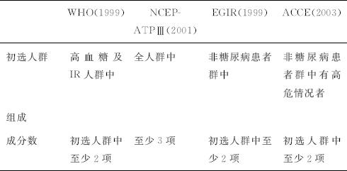 目前研究中较多用的是WHO及NCEP-ATPⅢ标准。而中华医学会糖尿病学分会建议以肥胖、高血糖、高血压及血脂紊乱作为MS诊断的主要组成成分,并未包括IR是因为虽然中华医学会糖尿病学分会认为可以用简易公式计算胰岛素敏感性,但是鉴于目前血胰岛素测定还不是日常诊疗或筛查中的常规项目,更由于胰岛素测定技术尚未能标准化,难以对IR的诊断定出一个统一分割点,故认为在CDS诊断标准中暂时不包括IR项目。而且根据中国人的数据分析,人群中有微量白蛋白尿者大多已可由其他组成成分诊断为MS,所以在中国人诊断标准中不包括微量白蛋白尿。 |