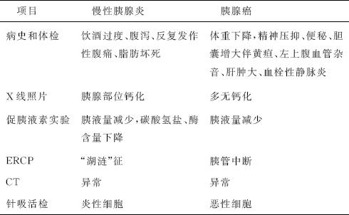 (二)慢性胰腺炎 慢性胰腺炎(chronic panceratitis,CP)是由于不同因素造成的胰腺组织和功能持续性的损害、胰腺可有不同程度的腺泡萎缩或胰管变形,有部分或广泛的胰腺纤维化或钙化,有轻重不一的胰腺外分泌或内分泌功能障碍。慢性胰腺炎临床表现不一,重症患者可有腹痛、腹泻或脂肪泻、消瘦、胰腺钙化等典型症状和体征。轻度和中度患者大多仅有腹胀、消化不良、纳差、腹痛等不特异症状。 1.流行病学 慢性胰腺炎发病率各家报道不一。国外尸解发病率为0.18%~2.8%,人口调查自1/10万~10/10万,男性多于女性,年龄多在30~50岁。我国尚无准确发病率的调查报道,但临床并非少见。 2.病因 近年来国内研究资料表明,我国慢性胰腺炎主要发病因素不同于欧美等西方国家。长期酗酒造成的酒精中毒是西方国家中慢性胰腺炎最常见的原因,占慢性胰腺炎病因的60%~80%,而在我国各种胆管系统疾病是引起慢性胰腺炎最主要的原因。 引起慢性胰腺炎的各种胆管系统疾病有急性或慢性胆囊炎、胆管炎、胆石症、胆管蛔虫症、Oddi括约肌痉挛或功能障碍等。发病机制主要是炎症感染或结石所引起的胆总管开口部或胰管和胆管交界处狭窄或梗阻,使胰管胰液流出道梗阻,胰管内压力增高,可导致胰腺腺泡、胰腺小导管破裂,损伤胰腺组织及胰管系统,使胰管扭曲变形,造成炎症或梗阻。胆管疾病引起的慢性胰腺炎特征病变主要在胰头部,胰头部增大,纤维化,腹痛常在中上腹或有上腹。引起胰腺钙化较少见,但并发梗阻性黄疸的较多见,这些是我国慢性胰腺炎的临床特点。 3.病理生理 慢性胰腺炎的病理变化因病情轻重不同而有较大区别。病变可限于局部胰腺小叶,也可弥漫至全胰腺。基本病变是胰腺腺泡组织结构被破坏,可见有胰腺组织纤维化,在小胰管内出现蛋白小栓子,引起小胰管狭窄或闭塞,使腺泡细胞萎缩,在小叶腺泡和小叶间形成纤维增生。最后整个胰腺实质破坏形成纤维化常可与周围脏器粘连,主胰管可不规则狭窄、梗阻、远端扩张,可波及小胰管分支,末端形成囊状。整个胰腺变硬,表面有不规则结节,可见有脂肪坏死的小白点或钙质沉着。有的可见胰管内结石或不规则钙化灶,也可并发有胰腺囊肿。 4.分类 典型CP有五联征:反复发作上腹痛、胰腺钙化、假性囊肿、糖尿病和脂肪泻。按临床表现特点可分为:典型、胃病型、腹泻型、黄疸型、结石型、无痛型、糖尿病型和肿块型。 5.临床表现 (1)腹痛“腹痛是慢性胰腺炎最突出的症状,60%~90%的患者都有程度不等的腹痛。疼痛多在中上腹或左上腹,也可在右上腹,为阵发性呈反复发作,也可为隐痛或钝痛,随病情加重渐发展为持续性腹痛。饮酒、进油腻食物、劳累均可诱发腹痛,疼痛剧烈时常伴恶心、呕吐,疼痛可向后背、左肩部放射,也可放射至双季肋部。慢性胰腺炎的腹痛常有胰腺疼痛体位特点,即患者喜坐位或前倾位,平卧位时或进食后躺下时疼痛加重,前倾俯坐时或膝屈曲腹部抱枕头时可使疼痛缓解。 (2)消化不良症状:慢性胰腺炎大多数有腹胀、食欲减退、恶心、嗳气、乏力、消瘦等消化不良症状。由于胰腺外分泌功能不全,分泌胰消化酶减少,对食物消化吸收功能减退;另一方面因进食后易加剧腹痛,患者食欲下降,加之患者常伴脂肪和蛋白质丢失,长期就会有体重下降,明显消瘦。 (3)腹泻:重度慢性胰腺炎常有腹泻,主要是由于胰腺外分泌功能障碍所致消化吸收不良,典型的可为脂肪泻,大便每日3~10次不等,大便量增多,呈酸恶臭味,泡沫状,大便表面发油光或含有油滴,显微镜下可见脂肪滴。在进油腻食物后大便次数可增多。有些患者大便中还可见有未完全消化的肌肉纤维。 (4)黄疸:由于我国慢性胰腺炎并发胆管疾病较多,在临床上有黄疸的比国外报道要更多见。黄疸一般为轻到中度,常见以直接胆红素升高为主,主要是由于胰头肿大压迫胆总管所致,也可是胰腺假性囊肿和纤维化肿块压迫胆管造成的。另外,常同时并发胆石症、胆管感染等也可形成黄疸。 (5)并发症的表现 1)糖尿病:是慢性胰腺炎最常见的并发症。 2)腹块:慢性胰腺炎可并发有胰腺假性囊肿,有些患者腹部可触及包块,多在中上腹发作时可有压痛。 3)腹水:慢性胰腺炎患者有的可出现腹水,常是由于胰腺囊肿及炎症刺激腹膜所致,腹水量多少不一,蛋白质含量常较高,腹水淀粉酶可明显升高。如显着高于血淀粉酶可确诊为胰性腹水。 4)上消化道出血:慢性胰腺炎可并发上消化道出血,主要原因是:①胰腺纤维化或胰腺囊肿或压迫脾静脉,或有门静脉血栓形成造成门静脉高压症;②慢性胰腺炎并发消化性溃疡概率较高(5%~15%),除有疼痛反酸症状外,有的可伴有出血;③酒精性慢性胰腺炎者常酗酒易形成恶心、呕吐,常并发有酒精性出血糜烂性胃炎或贲门撕裂症引起出血。 5)脂肪坏死:有些慢性胰腺炎患者可发生多发性脂肪坏死,机制尚不明。皮下脂肪坏死常在下肢,坏死周围有炎症反应,可形成硬结节。脂肪坏死多在长骨可引起骨痛、股骨头无菌性坏死,甚至破行。 6)精神症状:少数患者可有忧郁、狂躁、性格改变等精神症状。 6.检查 (1)实验室检查 1)血白细胞:慢性胰腺炎在急性发作期白细胞可升高,如并发胆管感染时也可明显升高。 2)大便检查:可见粪便中含有未消化肌肉纤维和脂肪滴。 3)血淀粉酶:慢性胰腺炎一般血淀粉酶无明显升高,在急性发作时可显着升高,而测定血
