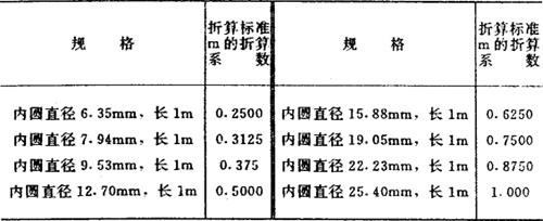 〔计算例〕 有内圆直径12.70毫米的胶管长100米,按上表折算系数计算为标准米。