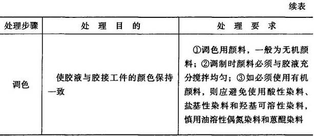 | 释义 | 胶粘剂的涂敷及固化 (1)前处理 前处理的步骤如表8-18所示. 表8-18 前处理的步骤