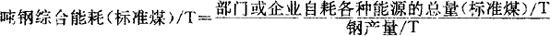式中,部门或企业自耗各种能源总量是指统计期内所消耗的全部外购能源,包括煤、电、天然气,以及外购焦炭、蒸气等。各种能源的消耗量均需折算成标准煤的重量,然后相加求和。钢产量是部门或企业统计期内的合格钢锭重量。 吨钢综合能耗不仅与企业或部门能源的利用水平有关,而且与其生产结构和产品结构等因素有关所以,在各企业之间,单位产品的综合能耗不能简单地进行对比,但可以利用它概略地分析其能源利用水平的升降变化。为了比较各企业之间的能耗水平,并查明产生能耗水平差异的原因,必须分析其生产构成、产品结构、各工序平衡等因素。与国外企业比较时,还要考虑统计口径的因素。为此,在实践中采用吨钢可比综合能耗指标作为吨钢综合能耗指标的补充。 吨钢可比综合能耗是指钢铁联合企业生产一吨合格钢锭所消耗的能源数量。必须指出,由于习惯上常用粗钢产量表示联合企业生产水平,故用钢的产量来计算企业的能耗水平。而消耗的能源数量不是企业全部能源消耗,只包括焦化、烧结、球团、炼铁、炼钢、连铸、轧钢、燃气、机车运输、能源亏损等。在钢铁企业中,化工副产品、其他副产品、矿山、选矿、铁合金、耐火材料、石灰、铸管、轧辊、机修、化肥、洗煤、水泥、基本建设及其他非生产设施的能耗均不计入吨钢可比综合能耗。单位可比综合能耗主要用于比较和考核企业的能耗水平,但不能作为能源总量计算的依据。 在钢铁企业中还有一种单位产品综合能耗指标,即工序单位能耗。它是指产品生产过程中某一基本工序生产单位产品所消耗的能源总量。例如,钢铁生产的基本工序有炼焦、烧结(球团)、炼铁、炼钢、初轧、轧材。在这些工序分别生产每吨焦炭、烧结矿、生铁、钢锭、钢坯、钢材所消耗的能源,称为各该工序的单位产品能耗。它是衡量各工序能源利用水平的重要指标。它不同于燃料消耗,也不同于动力消耗,它是燃料和动力消耗的总和。例如,吨烧结矿能耗不同于吨烧结矿的燃料比,高炉吨铁能耗不同于炼铁焦比或综合焦比。 工序单位能耗等于该工序总能耗扣除回收的二次能源与该工序产品产量之比。其计算公式如下: