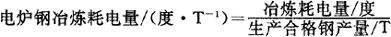 3.单位产品主要能耗指标 这个指标是反映生产某种单位产品直接消耗的某种能源数量。它在生产这种产品所消耗的各种能源中占较大比重。例如,高炉生产中的焦比,电炉生产中吨钢电能消耗,火力发电厂单位电力标准煤耗等。 (1)焦比。焦比是表示生产一吨生铁所消耗的焦炭数量。在高炉生产中焦比是最重要的能耗指标,是决定吨铁能耗的主要因素,约占吨铁能耗的94.5%左右。由于焦比的高低不仅涉及能源的消耗,而且与高炉有效容积利用系数高低直接相关。因此,采取提高入炉矿石品位、降低焦炭灰分、提高风温及降低生铁含硅量等措施降低焦比,以求得低能耗、高产量,无疑是非常正确的。同时,也应注意不能孤立地片面追求焦比这一指标,要从全面节能观点出发,即从企业煤气平衡及生铁的净能耗来考虑。 (2)电炉钢冶炼电耗。在电炉钢吨钢能源消耗中电能消耗约占70%~80%。电炉钢冶炼电耗是指每炼一吨电炉钢在实际冶炼过程中所消耗的电量。其计算公式如下:
