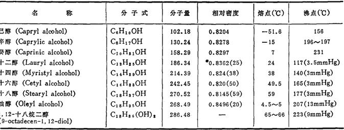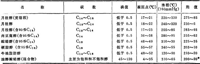 从油脂制取的典型商品脂肪醇性能表