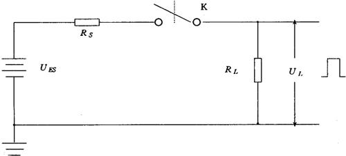 | 释义 | 脉冲幅度和时间参数的测量和标准 1.脉冲幅度 (1)测量方法 脉冲幅度参数的范围很宽,从毫伏至数十伏,乃至数百伏。同时其重复频率和脉冲宽度也不尽相同。脉冲幅度参数一般可用示波器、峰值脉冲电压表测量。测量精确度要求高时,可用补偿法、直流比较法和脉冲展宽等原理对各种脉冲幅度进行准确测量。 (2)脉冲幅度标准 脉冲幅度标准是建立在直流电压标准的基础上,即用一个开关切换一个准确度已知的直流电压标准来得到。原理电路如图7.11-1所示,图中UEs为直流电压标准;Rs为直流电压标准源内阻;RL为负载电阻;UL为输出脉冲幅度。如果开关K是理想的,没有电压降,则当开关闭合时,UL=UES-IRRS,式中IR为流入负载RL的电流。因为Rs很小,可忽略,所以UL≈UES。当开关断开时,IR=0,UL=0。只要开关特性已知,输出脉冲幅度即为已知。输出脉冲的重复频率取决于开关K的工作频率。