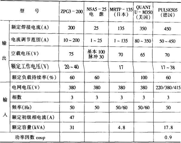 表11-28 脉冲弧焊电源的技术数据