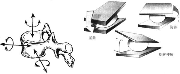 | 释义 | 脊椎的生物力学 脊柱具有静力学和动力学的特点,具有支持头部和躯干、保持头和上半身平衡、吸收作用于脊柱的外力和震荡力、保护脊髓和胸腔内脏器及腹腔内脏器、生产红细胞的功能。脊柱由其周围韧带及椎间盘提供内源性稳定,而脊柱周围肌肉则给予外源性支持。脊柱的活动节段(motion segment)或功能单位由相邻两节椎骨及其间的软组织构成,椎体、椎间盘和前、后纵韧带构成活动节段的前部,相应椎弓、椎间关节、横突、棘突和黄韧带、棘上、棘间韧带等则构成活动节段的后部(图1-55)。