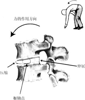 图1-57 脊柱屈曲活动时椎间盘的作用 头可以在各个方向上运动。寰枕间的椭圆形关节和寰枢间的枢轴关节联合产生三轴运动,成为一个“球与凹”型的关节,并因有翼状韧带和十字韧带加强,显得特别坚固。 颈椎关节突的关节面方向接近水平,颈段脊柱可做较大幅度的屈伸、侧屈和旋转运动。屈伸运动主要在寰枕关节发生,下颈段屈伸时,其运动范围大致为29°,椎间盘的厚度随屈伸发生改变。正常颈椎屈伸瞬时中心由上向下逐渐移向椎体的前上方。颈椎屈伸时,椎间孔的大小亦发生变化,前屈时扩大,后伸时缩小。颈椎旋转运动主要发生在寰枢关节,可达47°,占整个颈椎旋转运动的一半。枕颈屈伸范围共35°,后伸为25°,前屈为10°,并能轻度侧弯。寰枢椎的活动主要是旋转活动,是围绕齿状突进行的,其旋转度占整个颈椎旋转度的50%。愈靠下的颈椎活动节段,其旋转度愈小,如第6至第7颈椎节段的旋转度比第4至第5颈椎的为小。此外,寰枢椎间尚有5°~15°的屈曲活动、10°的后伸活动。下颈椎活动度很大,前后屈伸及左右侧弯均可达90°,第4颈椎与第5颈椎间的伸屈活动度最大。颈椎伸屈的或侧、弯的中心线在椎体内,旋转的中轴线在椎间盘内。每节段活动时,椎间盘如球在两椎体间旋动,而小关节则以滑动来引导椎体间的伸屈或侧弯。 胸椎的伸屈活动受胸廓的肋骨框架和与水平面成60°角的小关节所限制,伸屈及旋转的轴心均在椎间盘。椎体间的摇摆活动(rocking-motion)由小关节来引导。胸椎上节段的伸屈幅度有4°,中部的为6°,下部的为12°,侧弯幅度为上节段6°,下节段8°~9°。胸椎旋转幅度有40°,旋转时合并有侧弯,由上到下,其旋转范围逐渐改变。 腰椎小关节互成90°角,即上椎体的下关节突位于外侧,这对腰部旋转有限制,但有利于腰部伸屈活动。一般来讲,小孩腰部伸屈最大幅度为80°,老年人仅为20°,伸屈幅度最大的节段在第4至第5腰椎节段(约20°)。侧弯幅度为6°,腰骶部的略小一些。伸曲屈加旋转时,中心线在椎间盘。每节段的旋转幅度为2°,而腰骶部的为1.5°。人行走时,骨盆、腰椎和第7至第12胸椎成为一个旋转单位。腰椎旋转的轴心在椎体后方,因而增加对纤维环的剪力,是易于伤及椎间盘的。 由于性别、年龄及平时锻炼的个体差异,很难得出正常脊柱功能活动幅度,也无法测得每个功能节段的活动幅度。一般来讲,脊柱最初50°~60°的屈曲主要发生在腰段,骨盆的倾斜可使脊柱进一步屈曲。胸段脊柱由于关节面方向、肋骨框架限制及棘突近乎垂直,几乎不能屈曲,所有脊椎活动由肌肉控制。脊柱的侧屈运动位于胸段和腰段脊柱,胸椎关节面的方向允许做一定程度的侧屈,但又受肋骨框架的限制。脊柱的旋转运动主要发生在胸段和腰骶段,旋转总伴有侧屈,二者具共轭性。若一节段异常(因融合或畸形),则邻近节段的活动代偿性增加。骨盆总是参加脊柱活动,当有一髋异常融合时,腰椎活动必然增加。 骨盆的倾斜可增加躯干特别是腰段脊柱的总活动度。腰段脊柱的屈伸幅度由上向下逐渐增加,到腰骶段可达20°。侧屈幅度在腰段为6°,腰骶段为3°,旋转幅度向下逐渐减少,下腰段仅为2°,但至腰骶段又增加为5°。 脊柱的后伸范围较小,伸脊柱的肌肉主要为竖脊肌各肌柱。脊柱的旋转与侧屈密切相关,前屈时侧屈与旋转一同朝向凸侧,后伸时侧屈与旋转一同朝向凹侧。旋转轴位于椎体中心,腰椎关节突的关节面方向妨碍旋转运动,胸椎则妨碍侧屈运动。腰椎侧屈相当灵活,而旋转运动极小。 脊柱的运动是由很多深浅部位不同、大小和长度不同的肌肉共同作用而成的。从肌肉的长度和直径,以及其附力点的杠杆长度来计算相对肌力。来自肌力或地心引力的纵向压缩对脊柱的扭转动作,离直线愈远愈大,所产生的畸形如腰前凸增大、减少或侧凸也愈明显,变形也愈大。肌肉附力的杠杆愈长,扭转力愈大。各组肌肉扭转活动的相对功率,几乎完全依赖于杠杆长度,也依赖于肌肉和杠杆方向之间的夹角,愈接近直角,拉力也愈有效。 脊柱肌肉是控制姿势的重要因素。在这方面,脊柱肌肉活动的频率和力量是不可忽视的。刺激足部可引起脊柱反射性收缩和姿势的改变,伸展反射能促进畸形的发生。在反射活动中,关节神经传入的重要性是明显的,关节囊或韧带的断裂既有引起直接的力学影响,也有间接的反射影响。 三、脊柱各部的生物力学 (一)椎体 脊椎骨由上到下逐渐变大,承受的压力也从第1颈椎到第5腰椎逐渐增大。40岁以内的人,椎体内骨松质担负50%的压力;40岁以上的人,骨松质支撑力逐渐减小,仅可担负35%的压力,但60岁以后其支撑力减小的速度变得慢一些。35岁以后,由于骨量的减少,椎体的强度随年龄增长而逐渐减弱。椎体骨组织减少25%时,其强度将减弱50%。椎体由皮质骨组成外壳,其内为松质骨,上下面为软骨终板。椎体承受头部及躯干大部分载荷,由上方软骨终板经皮质骨、松质骨传递到下方软骨终板。老年人特别是经绝后妇女,由于椎体骨密度明显降低,脊椎骨质疏松,横的骨小梁已被吸收,负担压力的能力变小,就是在没有外伤的情况下,也可发生多个椎体压缩骨折,这是由其上面的重力和肌肉收缩所致。有半数的实验性脊椎压缩骨折,折骨愈合后其骨松质的支撑力反而加大,这与其骨小梁增生及骨化有关。 (二)椎间盘 当人站立时,一个椎间盘承受的压力,比它上面的体重还要大。Nachemson(A