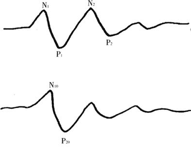 图18-7 波幅命名及P1、N1为主反应,其后为后发放