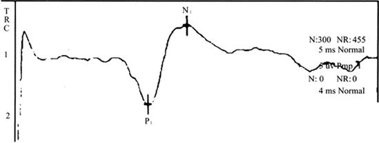 图18-11 正常MEP 表18-1 正常诱发电位的潜伏期和波幅(CX±s)
