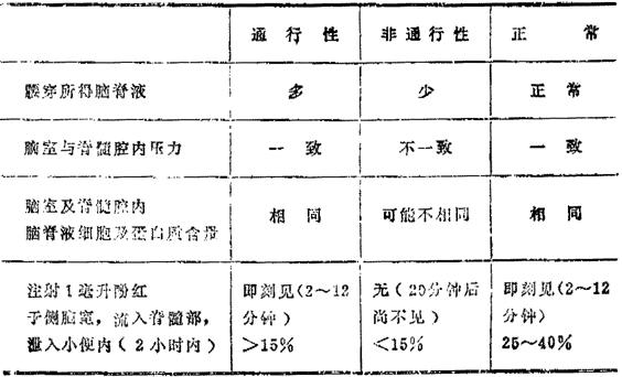 | 释义 | 脑积水 【病因】 多为先天性脑部发育不全或后天脑膜炎、颅内出血引起脑膜粘连等。 【临床表现】 一、症状及体征:头颅逐渐均匀性增大,头围明显大,囟门裂开或增大膨隆,骨缝裂开,面部相对小,眼球转向下方,即所谓太阳下山征,指敲颅部出现空瓮声,常有呕吐、惊厥、四肢强直等,头颅过大时,则头不能抬起,智力减退,腱反射可亢进。 二、X线颅片:可见脑室扩大,骨缝分开。 三、酚红试验:可区别为通行性或非通行性。其作法是同时进行侧脑室穿刺及腰椎穿刺,注入酚红1毫升于侧脑室,计算由腰椎穿刺针内流出脑脊液转为淡红色的时间,并于注入酚红2小时后留尿,测定其含酚红量。 通行性与非通行性脑积水鉴别表