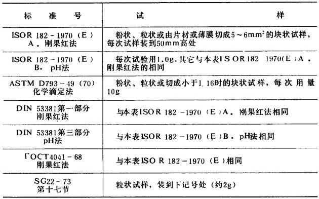 图10-7-5 DIN53381pH法反应管 1-气体入口管 2-塞子 3-气体出口管(接pH测定池的气体入口管) 1-试管 5-隔热板 6-油浴 7-试样 (三)试样 表10-7-5 试样