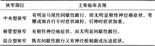 | 释义 | 腰椎管狭窄症 凡是由于各种原因造成腰椎中央管及侧隐窝,神经根管变形或狭窄,而引起马尾神经或神经根受压,并产生相应的临床症状者,称为腰椎管狭窄症。 【病因病理】 椎管是由各个椎孔连续而成的管腔,腰椎管较宽而其内为较细的脊髓圆锥和马尾神经。椎间孔为相邻椎骨两侧椎弓根上下凹缘切迹组成的孔,是神经根的通道,正常神经根占其上半部。由于先天(原发)性的因素,如椎弓根或椎弓间距离发育较短,软骨发育不全等,这些先天性因素在幼年时并不产生症状,可到青年时期,由于脊柱负重和活动量增加,损伤机会增多,容易引起症状,特别是中年以后,由于退变使椎管进一步狭窄而产生症状。以及后天(继发)性的因素,如腰椎前突畸形,脊椎滑脱,腰椎骨质增生,椎板增厚,关节突肥大,黄韧带肥厚,畸形性骨炎,椎间盘椎管内突出,椎体骨折后,椎管周围软组织损伤血肿及炎性变,术后局部粘连,瘢痕形成等原因均能使椎管前后、左右内径缩小或断面形状异常,而致使其椎管狭窄,产生临床症状。这种狭窄可能是骨的变化,或者是软组织的改变而引起。根据狭窄的部位可分为椎管型(中央型)、侧隐窝型(根管型)及混合型三种。 【诊断】 (一)症状 1.发病缓慢,病情多呈进行性加重。 2.长期多次反复的腰痛,多在下腰部及骶部,有的放射到下肢。常为酸痛、胀痛或刺痛、灼痛等。少数可放射到大腿外侧或前方,臀部甚至腹股沟部。症状可单侧,但多见双侧或左右侧交替出现。腰腿痛多因站立或行走多而加重,卧床休息后即可减轻或缓解。 3.下肢出现间歇性跛行。当患者站立或行走时出现腰腿痛,甚至下肢麻木无力,并随行走时间的延长而逐渐加重,以至不能继续再行走,需蹲下或坐下休息片刻后方能缓解而继续行走,但走后症状又复出现,又需蹲下休息后方能缓解者为马尾性间歇性跛行。但患者对骑自行车无影响。 4.下肢疼痛、麻木,行走无力甚至可出现尿急或排尿困难。 不同部位腰椎管狭窄症的临床表现