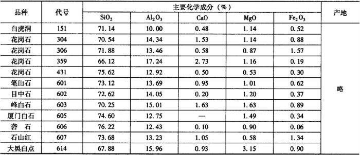 (二)天然花岗石的化学成分 天然花岗石中的主要化学成分包括:氧化硅、氧化铝、氧化钙、氧化镁和氧化铁等。各种天然花岗石中氧化物所占比例,如表15-10所示。 表15-10 天然花岗石的化学成分