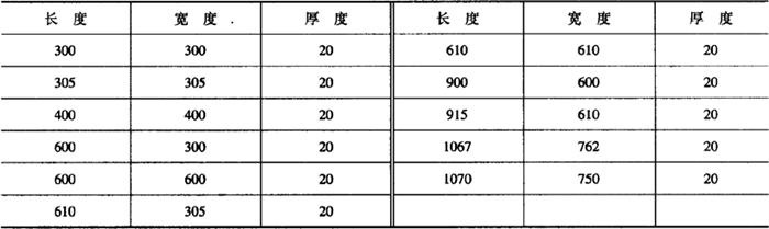 (三)天然花岗石板材的标准规格 天然花岗石板材的标准规格如表15-11所示。 表15-11 天然花岗石板材的标准规格 (mm)