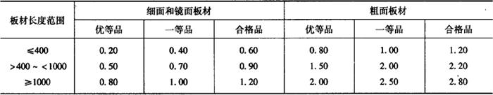 板材厚度小于或等于15mm时,同一块板材上的厚度允许极差为1.5mm;板材厚度等于15mm时,同一块板材上的厚度允许极差为3.0mm。 2.平面度允许极限公差 天然花岗石板材的平面度允许极限公差,应符合表15-13中的规定。 表15-13 天然花岗石板材的平面度允许极限公差 (mm)