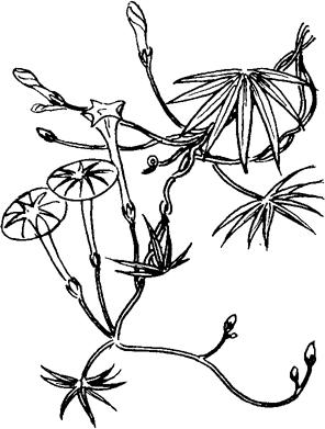 (1)植物学特征。茑萝,旋花科,牵牛花属,1年生草本。茎柔弱缠绕,光滑无毛。叶互生,羽状细裂、裂片条形,基部2裂片再次2裂;叶柄短,扁平状,托叶与叶同形。聚伞花序腋生,有花数朵,通常长于叶;萼片5裂,椭圆形,顶端钝或有小尖凸;花冠深红色或白色,高脚碟状,筒上部稍膨大檐部5浅裂;雄蕊5枚,不等长,外伸,花丝基部被小鳞毛;柱头头状,2裂。花期7~9月。蒴果卵圆形;