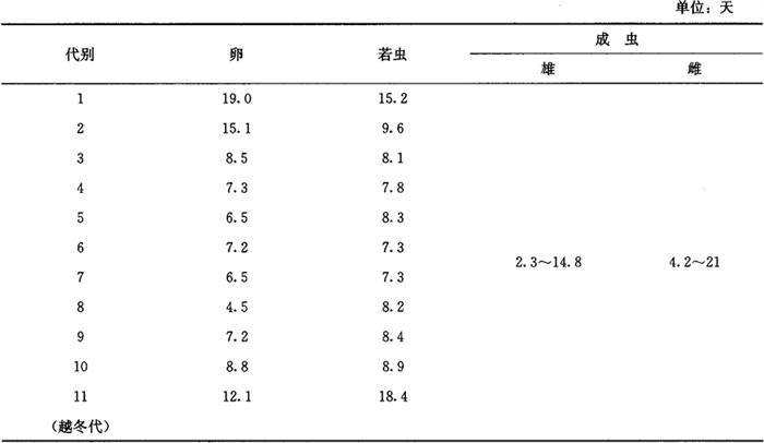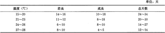 注:浙江 不同温度下假眼小绿叶蝉各虫态历期
