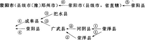 位于东经113°07′~113°30′、北纬34°36′~34°59′之间。 ①民国初年称荥泽县;1917年析荥泽县置河阴县。②1931年河阴、荥泽县合并,称广武县。③1944年冬汜水成立县抗日民主政府;1948年11月,汜水县、广武县两县合并,成立成皋县。④1954年6月,荥阳、成皋两县合并,成立新的荥阳县。⑤1994年4月5日,经国务院批准,撤销荥阳县,设立荥阳市。⑥1995年荥阳市(县级市)改为由省直辖,地级市代管。 荥阳县 见533页“荥阳市”。 荥泽县 见533页“荥阳市”。 |