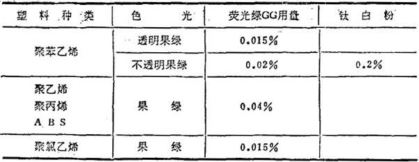 表14-8 荧光绿GG在塑料中的参考用量